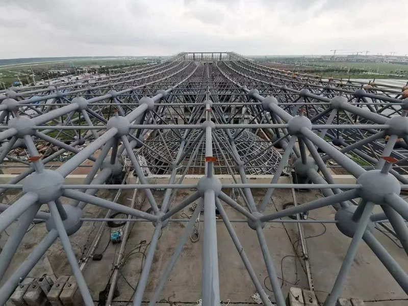 辦公樓-試驗樓網(wǎng)架工程,網(wǎng)架長度 81.8 米,寬度 32.4 米,支座高度26米。工程特點:本工程節(jié)點球為焊接球和螺栓球相結合,含鋼量較高、跨度大,結合本工程項目特點及危大工程管理要求,特編制頂升專項安全方案,并通過專家組論證后實施,本方案施工質量更有保障、安全系數(shù)高。歷經(jīng)55天的我公司順利交付得到業(yè)主及總包單位的一致好評。